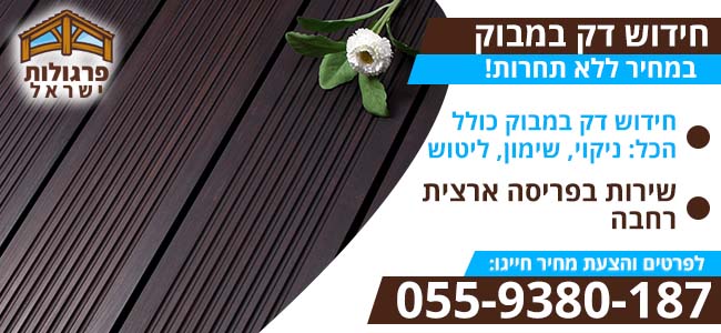 במבוק הוא סוג עץ חזק מאוד שמושלם לכל סוג של בנייה, כולל הקמת דק בגינה או לצד בריכה. דקים מבמבוק מעניקים לחצר מראה טבעי שקשה להשתוות לו אפילו עם עצים אחרים, אך הבעיה היא שהם עלולים לצבור הרבה לכלוך לאורך הזמן, וצבעם עלול לדהות, להאפיר ולהפוך להרבה פחות מרשים. חידוש דק עץ במבוק פותר את הבעיה הזו ומעניק לעץ חיים חדשים, ובזה אנחנו – חברת פרוגולות ישראל – בהחלט יכולים לעזור לכם. אנחנו מספקים שירותי תחזוקה וחידוש לדקים בפריסה ארצית רחבה, ותוכלו לקבל מאיתנו כבר עכשיו הצעת מחיר בטלפון לחידוש דק הבמבוק שלכם – ללא התחייבות!