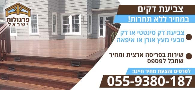 | צביעת דק גדול | 30-50 ש"ח למ"ר | עבור דקים בשטח 40 מ"ר ומעלה |